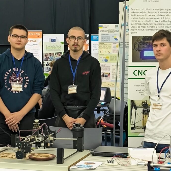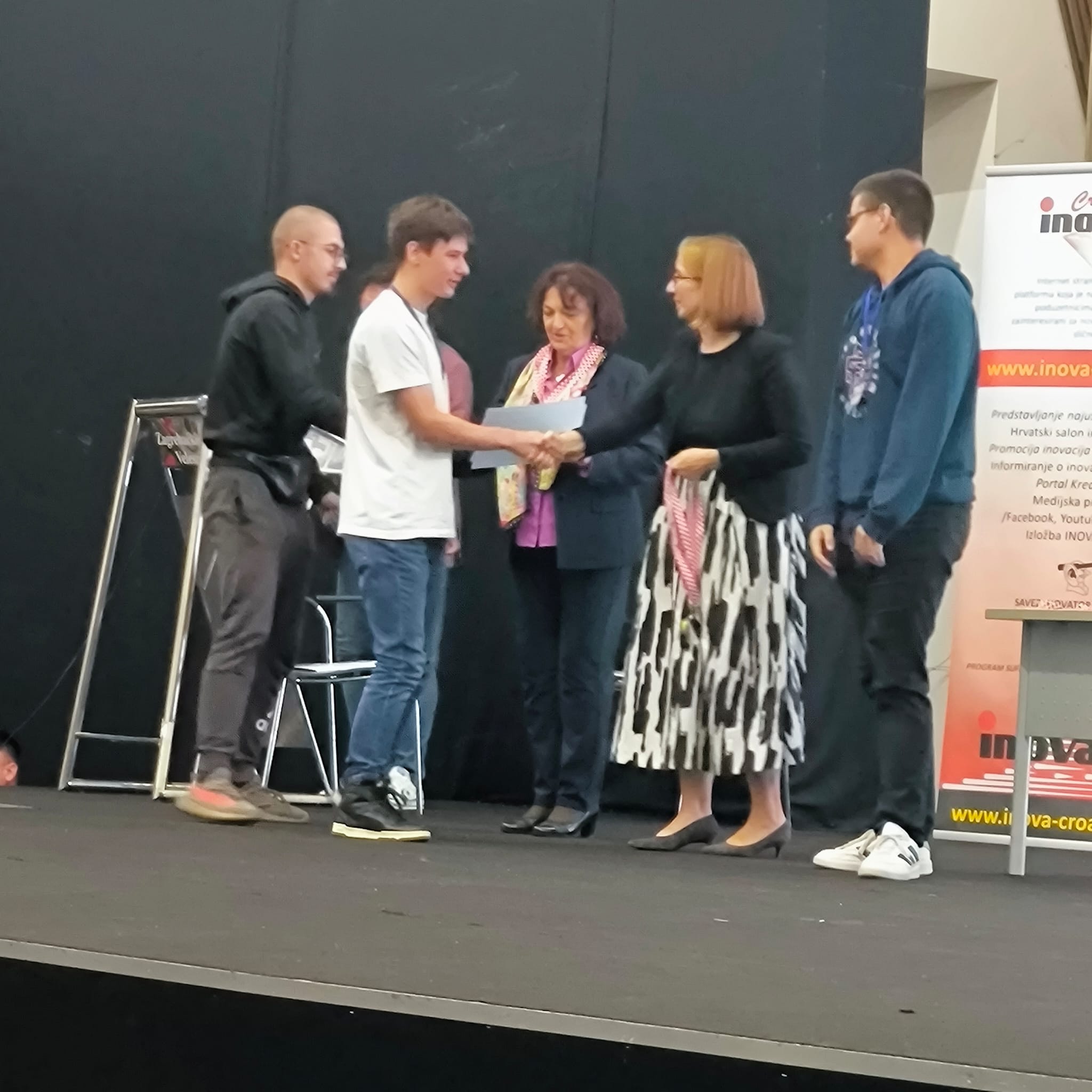 Na sajmu inovacija INOVA 2025 sudjelovala su trojica naših učenika: Domagoj Zelenika, Matej Čigir i Jakov Kipson sa svojim radovima te su bili iznimno uspješni.