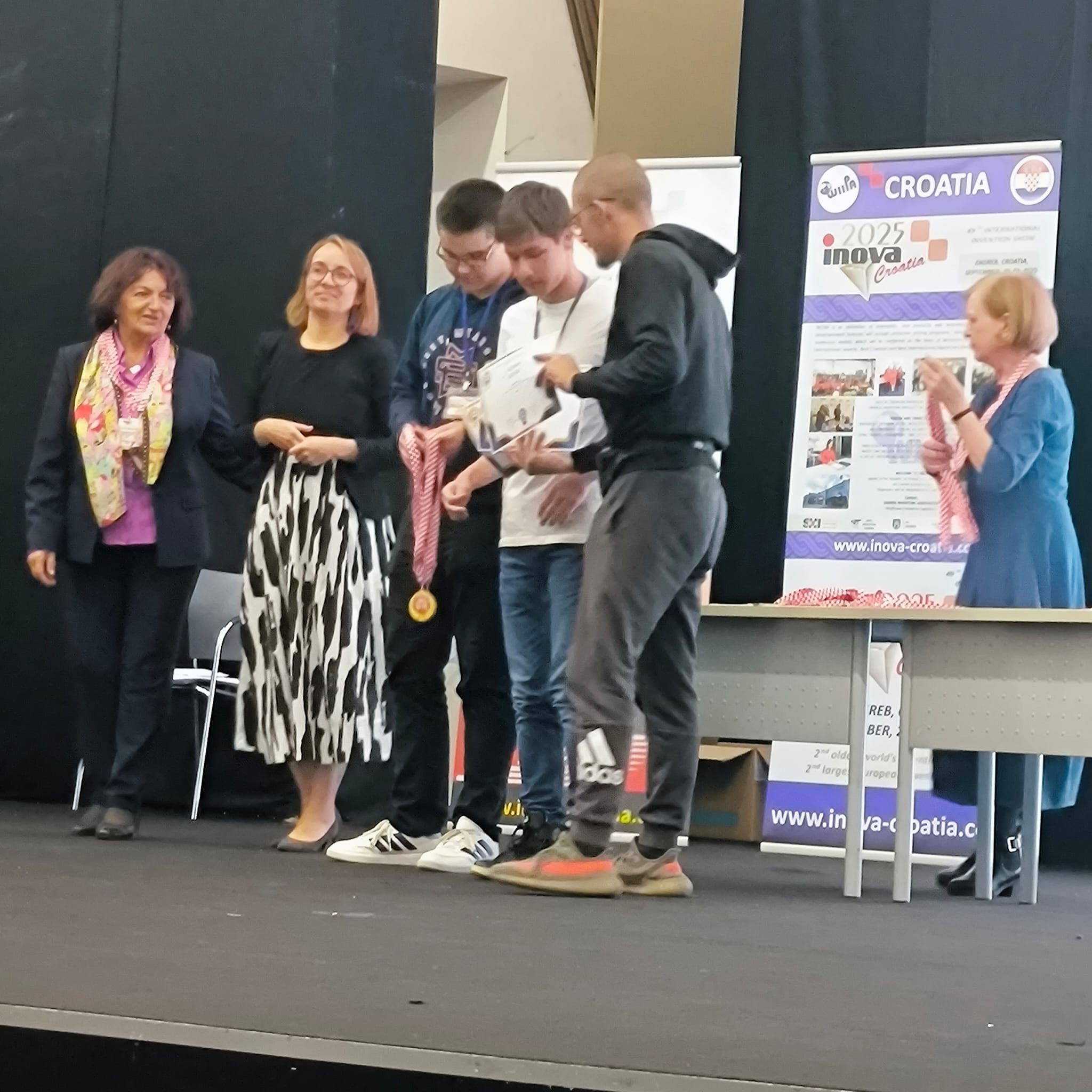 Domagoj Zelenika i Jakov Kipson osvojili su zlatne medalje. Matej Čigir osvojio je srebrnu medalju, ali i nagradu kao najbolji panelist na INOVI 2025, što je izuzetan uspjeh jer znači da je Matej vrhunski predstavio svoj rad.
