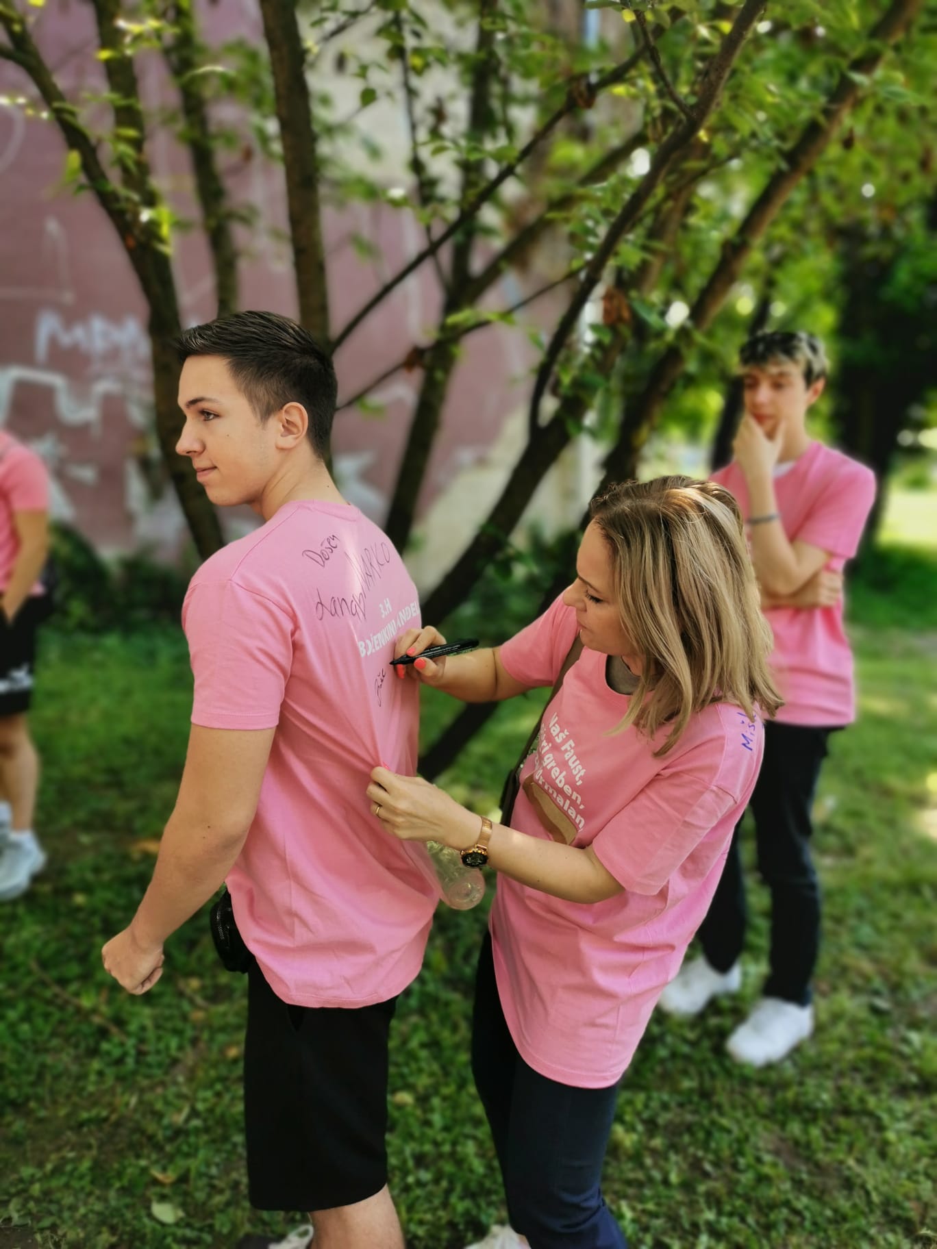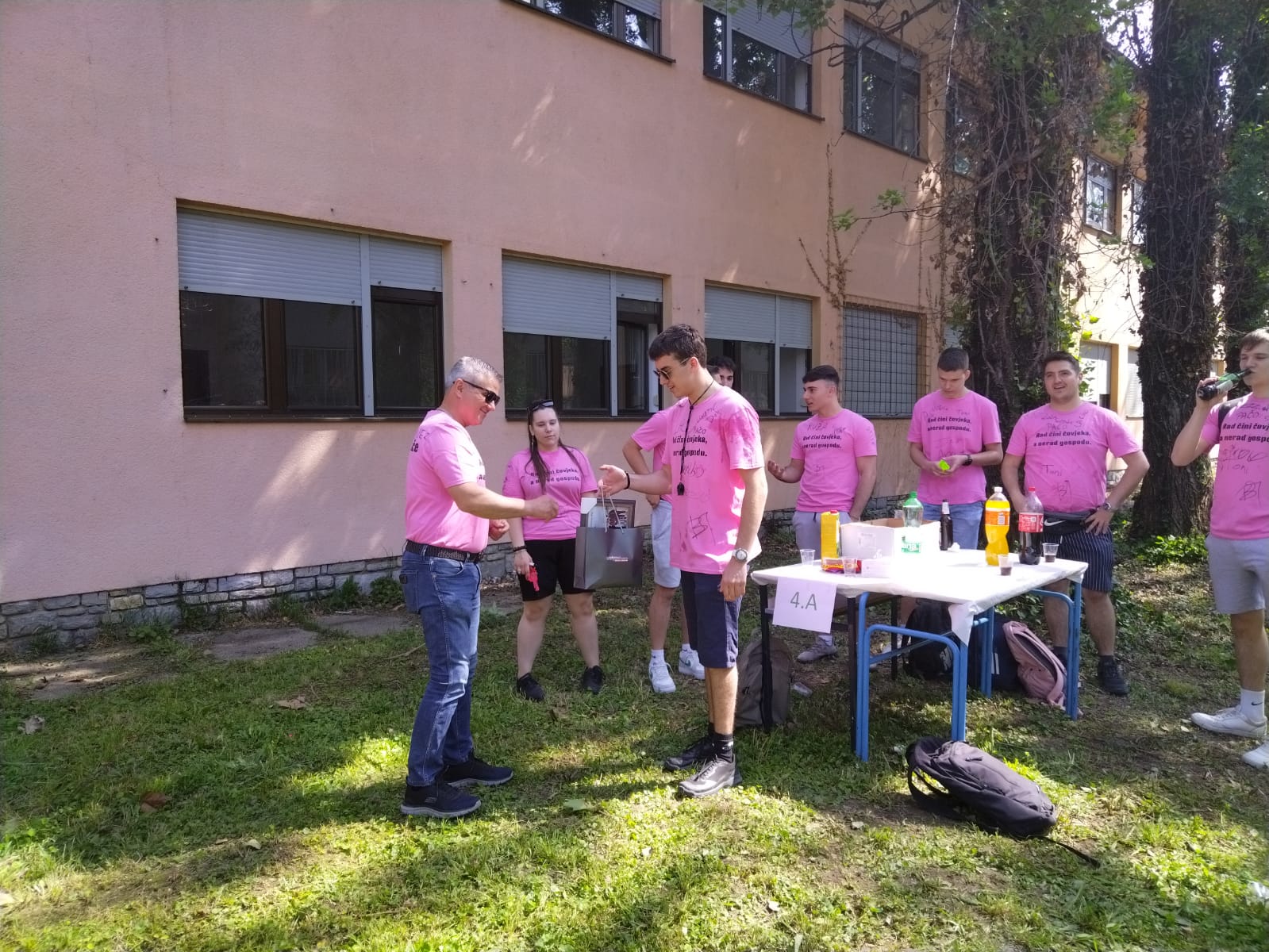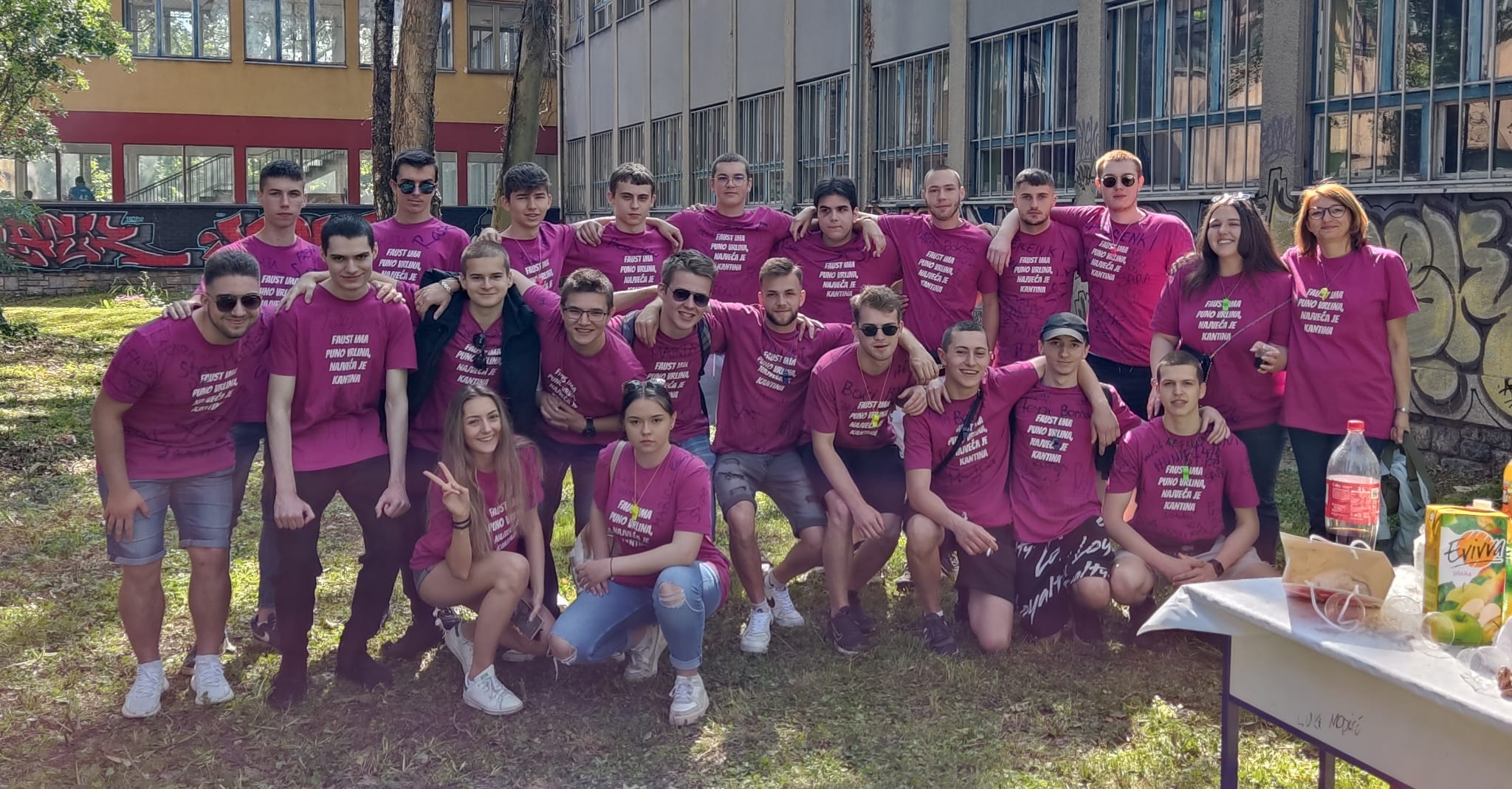 Jučer smo ispratili još jednu generaciju naših učenika. Učenici su se u pratnji svojih razrednika i drugih profesora koji su ih došli pozdraviti okupili u dvorištu škole gdje im je priređena mala zakuska. Družili smo se uz pjesmu, prepričavali zgode i uživali u prekrasnom, sunčanom danu. Svi zajedno smo se fotografirali ispred škole, a onda su učenici u pratnji svojih razrednika otišli na Bundek gdje su nastavili svoje slavlje. Nadamo se da će im ovaj dan kao i cjelokupan boravak u školi ostati u sjećanju kao lijepa uspomena.