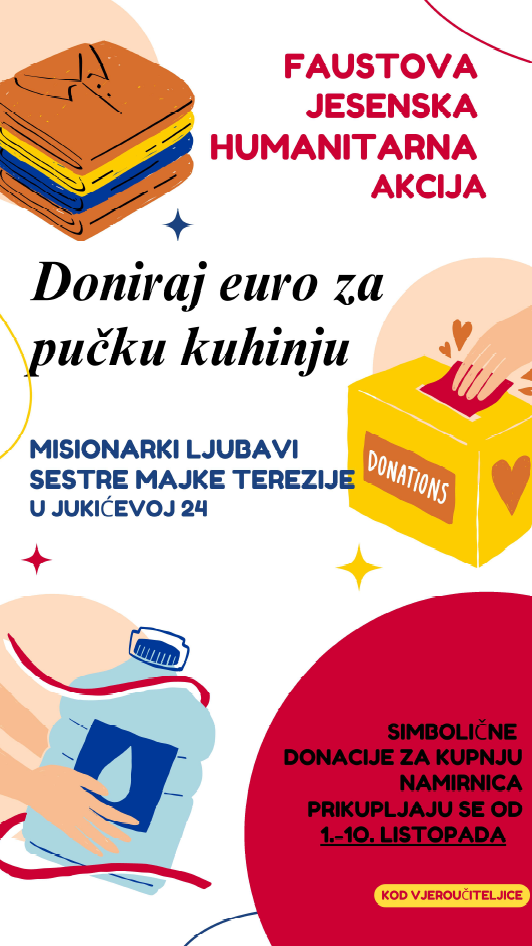 Simbolične donacije za kupnju namirnica za pučku kuhinju “Misionarke ljubavi–sestre Majke Terezije“, prikupljaju se od 1. do 10. listopada.
